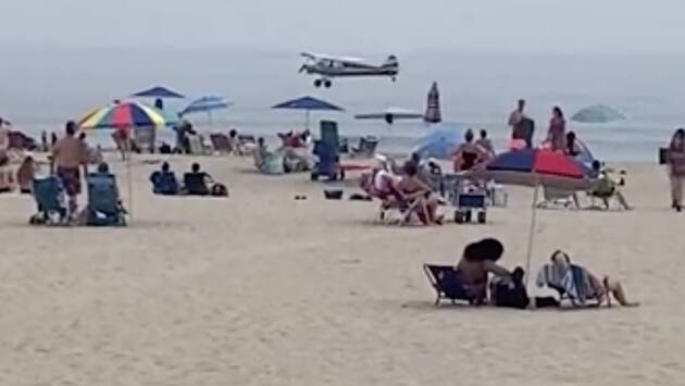 Самолет упал в море на глазах у посетителей пляжа и попал на видео