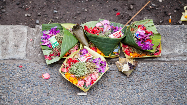 Мужчина поинтересовался, почему на Бали повсюду можно встретить эти корзины, которые наполнены цветами, едой и даже деньгами. Мужчине объяснили, что это - кананг сари. Их раскладывают повсюду, в том числе посередине дороги. Местные жители верят, что они поддерживают баланс между добром и злом, а также радуют богов.