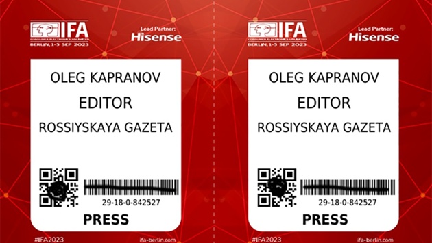 Фото электронного бейджа выставки IFA. Фото: Олег Капранов/РГ