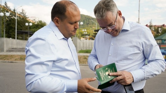 «Первый „паспорт“ я вручил главе нашего региона Владимиру Владимировичу во время его рабочего визита к нам на КМВ. Это памятная сувенирная продукция. Мы долго прорабатывали и улучшали наполнение паспорта. Он содержит в себе не только информационный характер, но и мы вшили туда бонусы, которые получит обладатель этого паспорта», — сообщил в своем телеграм-канале глава города Евгений Бакулин.