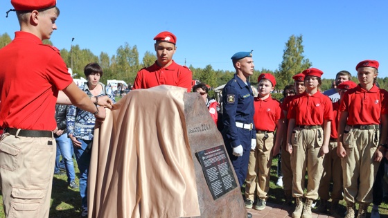 В торжественной обстановке был открыт Памятный камень с текстом песни "На безымянной высоте". Он встал в один ряд с Деревом Мира, в чьи корни ссыпана земля со всех воинских мемориалов и мест захоронения воинов в Калужской области и выставкой "Огненная Варшавка", картой героических мест региона, другими достопримечательностями мемориального комплекса.