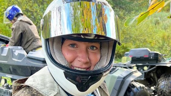На недавней фотографии, которую Юлия выложила в своем телеграм-канале, она крупным планом в камуфляжной кофте и шлеме на фоне двух квадроциклов. Юлия показывает в камеру симметричный гриб с белой ножкой и бежевой шляпкой. Она рассказала, что фото и видео сделаны по пути в живописное место, где природа Алтая предстает во всей своей красе. Речь идет о Емурлинском водопаде.