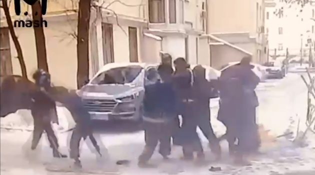 В центре Москвы дворники устроили массовую драку и попали на видео