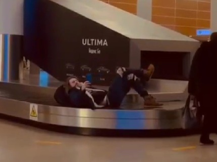 Мужчина прокатился на багажной ленте в аэропорту: видео