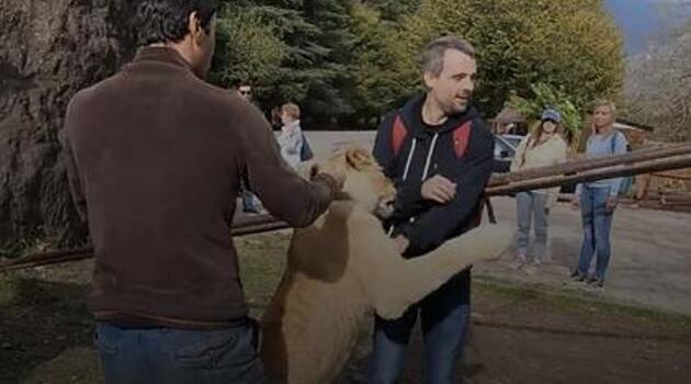 Нападение агрессивной львицы на россиянина в Абхазии попало на видео