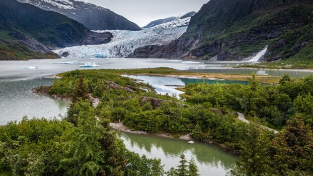 18 октября в США отмечается День Аляски. Именно в этот день в 1867 году эта земля, ранее принадлежавшая Российской империи, была передана Соединенным Штатам. Мы решили посмотреть, как выглядит Аляска в наше время, и привести рассказ Саши Чебан. «Холодное дыхание голубых ледяных монстров, с грохотом откалывающихся в море… Это, наверное, самое сильное впечатление от Аляски. Хотя я видел ледники в разных точках планеты, но не перестаю удивляться их красоте и притягивающей взгляд фотогеничности. Настроение создает и свинцовое небо со срывающимся дождем — короткое лето на Аляске практически всегда дождливо. Перед поездкой я думал, что это постоянное невезение с погодой в круизах по Аляске встречается у всех, однако именно пасмурная погода придает этому штату своеобразный и неповторимый колорит», — рассказывает Саша Чебан. Фотографии и текст Александра Чебана 1. Сегодня я приглашаю вас в окрестности городка Джуно (Juneau), являющегося столицей штата. Именно так, а не Анкоридж, как я думал ранее. Сюда не ведут автомобильные дороги; паутина заливов и фьордов, ледников и заснеженных вершин даже в середине лета — это реальность суровой жизни на Аляске. В часе езды находится один из ледников — Mendenhall (Менденхол). Самый известный в этой местности. Сойдя с трапа круизного корабля Celebrity Millenium, мы отправились на заранее забронированную экскурсию к леднику и на лодку посмотреть китов. С ледником сложилось идеально, с китами чуть хуже, зато стоимость была сравнительно низкой — в районе 120 долларов с человека, что для экскурсий там — просто идеально. 2. Городок Джуно, порт для круизных лайнеров — это микс туристических магазинов и всякой малоинтересной фигни. Поэтому в портах обязательно нужно брать экскурсии. 3. На корабле экскурсии обычно процентов на 30-50 дороже, чем в порту. Однако в интернете можно более взвешенно подойти к выбору. 4. Ледник Менденхол (Mendenhall) находится в 20 км от Джуно и имеет протяженность 19 км, однако это величина непостоянная, и с десятилетиями размер ощутимо сокращается. 6. В 30 минутах ходьбы от автомобильной стоянки имеется визитор-центр с информацией о леднике, интерактивными презентациями и фильмами. Очень люблю организацию туристических мест в нормальных странах. С одной стороны абсолютно девственная природа, а с другой комфортные информационные центры, дорожки и мостики. Вроде бы и туристов вокруг масса, но они абсолютно не мешают и не воспринимаются как что-то мешающее. 8. Природа волшебна, просто заставляет открыть рот и смотреть. Слова здесь лишние, просто фотографии. 13. Еще можно полетать на вертолете, но мой бюджет в этот раз не совпал с вертолетом. 24. По леднику можно ходить. Видите слева на фото туристов?! 29. Ну а дальше мы поехали смотреть на китов, но это уже другая история.