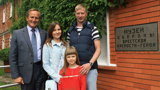 Директор мемориального комплекса Григорий Бысюк говорит, что юбилейного посетителя ждали два года: - Конечно же, туристов в самой крепости со дня открытия мемориала побывало гораздо больше. Как их сосчитать? Когда-то было решено вести счет посетителей музея, который открылся в 1956 году. Было время, мемориал принимал до миллиона человек в год. Потом - резкий спад. Нас радует, что сейчас молодежь стала проявлять интерес к истории. В минувшем году в крепости побывали 523 тысячи туристов, в Музее Великой Отечественной в Минске - 600 тысяч. В мае поток возрастает. Ждали, конечно, юбилейного гостя. И вот - молодая семья, приятные и скромные люди. Как выяснилось, Марии в этот день исполнилось 33 года. Мы вручили им сувениры и провели бесплатную экскурсию по музею. Васины приехали в Брест, как признался глава семьи, потому что когда-то были впечатлены кинолентой "Брестская крепость". Тогда и появилось желание побывать в легендарной цитадели. Игорь Угольников, напомним, снимал фильм в 2010 году в самой крепости на средства Союзного государства. - Хотелось посмотреть Брест, крепость и форты. Как только мне предоставили целую неделю выходных, собрались и поехали, - рассказал Денис Васин. - Мы впервые были в Бресте. Увидеть все своими глазами - это лучший способ знакомства. Город и крепость нам очень понравились, - вторила супругу Мария. Интересно, что два года назад 24-миллионной посетительницей также оказалась россиянка, приехавшая вместе с подругами. - Тогда еще обратили внимание, что все три подруги из городов-героев - Москвы, Санкт-Петербурга и Севастополя. У нас - крепость-герой. Россиян сейчас приезжает очень много. А еще наши основные зарубежные туристы - из Украины, Польши, Германии, Литвы, Латвии и Эстонии. Больше стало гостей из Китая, в основном делегации. В минувшем году у нас побывали граждане 51 государства, - поделился гостевой статистикой Григорий Бысюк. Брестская крепость - это не застывшая история. Обновляются и создаются новые экспозиции, ведется научная работа. Недавно издан сборник "Историческое наследие Брестской крепости. Люди и судьбы". В нем - воспоминания защитников, их детей. Издание "Март 1918 года. На изломе истории..." - о Брестском мире. Документ подписан в Белом дворце Брестской крепости, сейчас завершается консервация его руин. Каталог "Реликвии музейных коллекций" - первый альбом с изображением наиболее ценных 130 экспонатов мемориального комплекса (в фондах музея - более 90 тысяч экспонатов). Григорий Бысюк пригласил Васиных в Брест через пару лет, а может быть, и раньше, к тому времени должен зайти в музей за билетом очередной юбилейный посетитель: - Полина подрастет, может приехать одним из "Поездов памяти", у нее есть шанс стать 26-миллионным туристом. К слову Сейчас научные сотрудники мемориального комплекса работают над каталогом, в котором расскажут о живописных полотнах художников, писавших на тему крепости и Великой Отечественной. Планируется, что издание, приуроченное к 75-летию освобождения Беларуси, вскоре увидит свет. В нынешнем году в мемориальном комплексе открылась новая экспозиция "Летопись Брестской крепости". Трехмерные панорамы, подсветка, музыка, манекены защитников в полный рост - у большинства из них есть свои прототипы. Научную концепцию разрабатывали сотрудники мемориального комплекса. А в жизнь воплощали художн