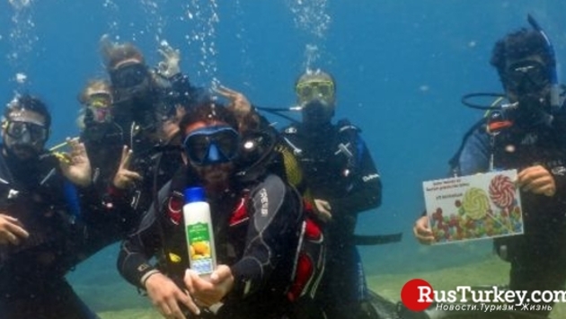 Дайверы из турецкого Фетхие отпраздновали Рамазан байрам на глубине 6 метров в одной из бухт. Об этом в среду 5 июня пишет информационное издание Haber. По словам энтузиастов, они решили воспроизвести повседневную жизнь под водой, имитируя праздничное чаепитие и традиционное в Рамазан угощение конфетами. «Мы даже взяли с собой одеколон для освежения рук, без которого не обходится ни одно празднование Рамадана. Традиционно, когда приходят гости, сначала им предлагают освежить руки одеколоном, а затем подают сладости»,- говорит дайвер Орхан Динтеш. Своим поступком дайверы также надеются привлечь внимание туристов к подводному миру в Фетхие. «Жизнь под водой настолько разнообразна и красочна, что каждый чловек хотя бы один раз в жизни должен взглянуть на эту красоту»,- сказал Орхан. Напомним, как ранее писал информационно-новостной портал Rusturkey.com в Турции начались праздничные каникулы.