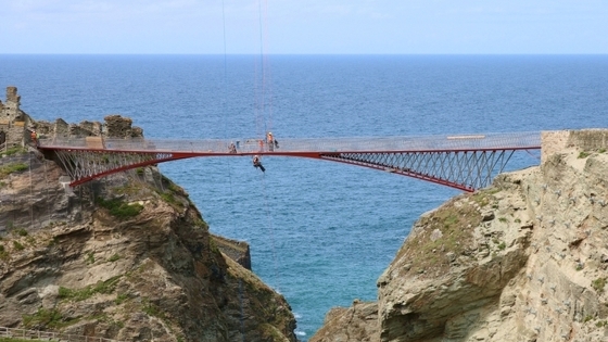В Корнуоле построили новый пешеходный мост. Он появился на месте моста, разрушенного около 500 лет назад. По мосту можно добраться до замка Тинтагель, места, где по преданию родился король Артур. Место издавна привлекает туристов, однако добраться до руин замка было проблематично. Сейчас, с появлением нового моста, туристов у замка станет гораздо больше. На постройку моста длиной 57 метров ушло более 50 тонн стали. Особенностью нового сооружения является то, что его секции не соединены посередине – между ними остается щель шириной в 4 см. В холодное время года она будет немного увеличиваться, а в жару – уменьшаться. Дизайнеры поясняют, что щель символизирует расстояние между материком и островом, а также своеобразную связь между прошлым и будущим. Создатели моста уверяют, что мост достаточно крепок и никакой опасности провалиться для пешеходов нет.