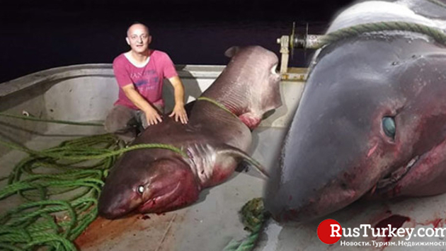 Накануне в прибрежных водах туристического района Айважик провинции Чанаккале в сети рыбаков попала огромная акула длиной 5 метров и весом более тонны, говорится в распространённом сообщении. Гигантский улов местные рыбаки выгружали на берег из лодки при помощи большого крана. Собравшиеся на причале местные жители и туристы делали памятные фотографии, многие поделились ими в социальных сетях. Напомним, что в Турции запретили отлов некоторых видов акул, теперь их будут маркировать и чипировать, об этом ранее сообщал информационно-новостной портал Rusturkey.com.