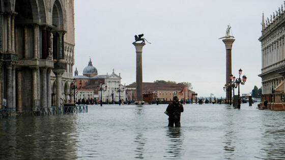 РИМ, 13 ноября. /ТАСС/. Нынешние рекордные показатели повышения уровня моря, вызвавшего феномен "высокой воды" в Венеции, вписываются о общую метеорологическую картину. Как пояснил в интервью газете La Repubblica старший метеоролог ВВС Италии, полковник Гуидо Гуиди, все дело в формировании широкого фронта холодного циклона, который спускается к Италии от Исландии. "Все просто: когда спускается холодное течение с севера, оно несет волну холодного циклона и дожди. Когда теплое течение поднимается с юга, в Средиземноморье устанавливается антициклон жаркого воздуха. Сейчас от Исландии спустился обширный фронт холодного течения, которое в районе Италии попало в море не менее чем на 10 градусов теплее, это и вызвало заряд ливневых дождей, которые продолжатся еще на протяжении двух недель", - пояснил специалист. В горах на высоте более тысячи метров выпадает обильный снег, как происходит сейчас в Доломитовых Альпах. К нынешнему рекордному за полвека поднятию уровня "высокой воды", по мнению Гуиди, прибавился и еще один природный фактор, который обострил ситуацию с наводнением в Венеции. "Вся Италия охвачена ветрами: холодный северо-западный ветер мистраль дует на Сардинии, бора на северо-востоке Апеннин и теплый сирокко на юге, который идет с Адриатики, препятствуя сходу воды по течению По в море. И это тоже привело к "разбуханию" лагуны в Венеции", - разъяснил метеоролог. "Высокая вода" - типичный для Венеции феномен, которая располагается на небольших островках и насыпях в лагуне на Адриатике как на "подушке". При сезонных приливах, которые зависят от лунного цикла и обостряются климатическими явлениями, такими как осадки и ветер, Венеция погружается в воду. Повышение уровня моря до 130 см считается некритическим, однако повышение этого уровня выше 130 см создает серьезные проблемы для города, входящего в Список всемирного наследия человечества ЮНЕСКО.