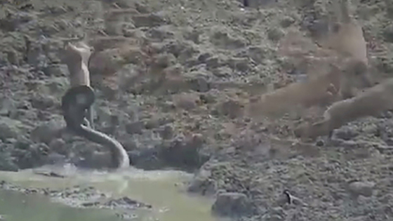 Камера, установленная возле водоема в индийском штате Махараштра, сняла оленя, попавшего в устроенную питоном засаду. Об этом сообщает NDTV. Четыре оленя, пришедшие на водопой, не заметили огромную змею, которая скрывалась под водой. Когда один из них оказался в пределах ее досягаемости, она с неожиданным проворством бросилась на него, впилась зубами в голову, а затем обвила и принялась душить. Позднее питон проглотил свою добычу. Кадры опубликовал в интернете сотрудник индийской лесной службы Сусанта Нанда (Susanta Nanda). «Когда питоны убивают добычу, они используют своего рода засадный метод, прыгая, атакуя ее и хватая зубами всего за 50 миллисекунд», — прокомментировал он. В Индии обитают несколько видов питонов, в том числе пятнистые удавчики, тигровые питоны и сетчатые питоны, которые вырастают до семи метров в длину и считаются самыми большими змеями в мире. 20 ноября сообщалось, что туристы в кенийском заповеднике Масаи-Мара стали свидетелями драки между леопардом и иероглифовым питоном. Змея обвила и попыталась задушить зверя, однако тому удалось вырваться и убить ее.