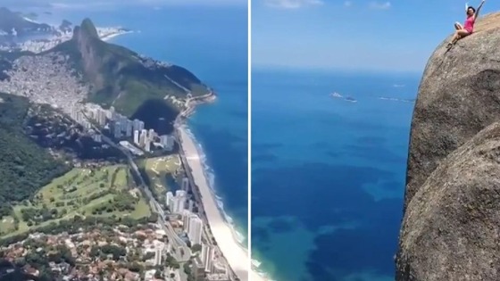 Пользователи соцсетей содрогнулись от ужаса, увидев видеоролик неизвестной женщины, которая позирует на краю скалы Педра-да-Гавеа в Рио-де-Жанейро. Она скользит по гладкой поверхности камня, кажется еще чуть-чуть и она улетит в бездну. В последние годы сотни туристов рискуют жизнью ради впечатляющих кадров и лайков в соцсетях, несмотря на десятки смертельных случаев после падения с высоты. Бесстрашная женщина машет руками, сидя на краю скалы Педра-да-Гавеа в Бразилии. Человек, который снимает, говорит ей «Ну давай еще!» и она на съезжает по скользкому склону почти до самого обрыва, останавливаясь в миллиметрах до падения. Затем оператор показывает панораму города, который находится внизу скалы высотой 914 метров. There is no fucking way. pic.twitter.com/LH1uigI5QE — jamie (@gnuman1979) February 16, 2020 Видео набрало больше 220 000 лайков, хотя далеко не все считают такую смелую выходку хорошей идеей. Многие ощутили выброс адреналина и испугались, просто просмотрев ролик. Некоторые осуждают опасный трюк, ради которого отчаянная женщина могла попрощаться с жизнью. Это не первый случай, когда туристы рискуют жизнью, фотографируясь в этом живописном месте. Скала очень популярна среди путешественников, которые хотят сделать впечатляющий снимок на краю утеса. По Инстаграму гуляет много кадров, на которых отчаянные туристы позируют на краю обрыва. В период 2011 — 2017 годов из-за попытки сделать впечатляющее селфи погибли 259 человек. Путешественники рискуют жизнью ради лайков в соцсетях. Морган Брехлер настолько любит горы, что берет с собой в путешествия трехлетнюю дочь. Малышка с удовольствием покоряет скалы вместе с мамой, вызывая удивление и восхищение. Смотрите также — Дорога в небо: самый высокий в мире наружный лифт поднимает пассажиров на 326 метров над землей Понравилось? Хотите быть в курсе обновлений? Подписывайтесь на наш Twitter, страницу в Facebook или канал в Telegram. Источник