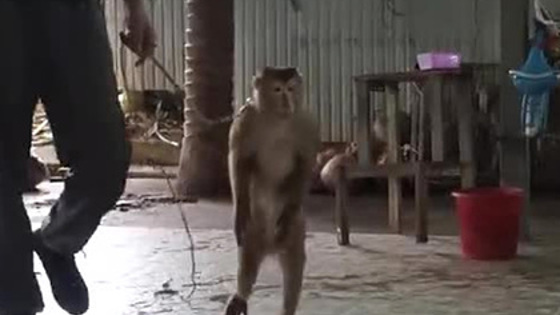Закованную в цепи беззубую обезьянку заставляли отжиматься на потеху туристам