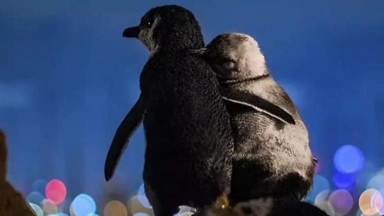 Фотограф дикой природы Тобиас Баумгертнер год назад запечатлел тёплые взаимоотношения между двумя овдовевшими пингвинами, которые стояли на краю скалы. «Пингвины, балансирующие на уступе, возвышающемся над Мельбурном, стояли в течение нескольких часов и наблюдали за сверкающими огнями мегаполиса. Один турист рассказал мне, что белая птица - это старая самка, которая потеряла своего партнёра. Второй пингвин - это молодой самец, который также остался в одиночестве. С тех пор они регулярно встречаются, утешая друг друга и часами стоят рядом, наблюдая за танцующими огнями города», - написал фотограф в комментариях к снимкам, размещённым в Instаgrаm.