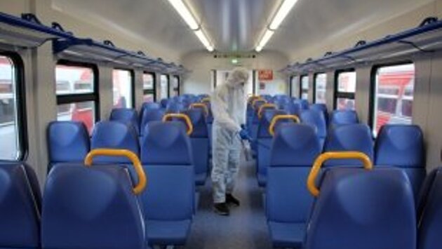 В поездах Байкальской пассажирской пригородной компании (БППК) все контактные поверхности – поручни, ручки, сидения, наличники окон – перед выходом состава на маршрут обрабатывают растворами, рекомендованными Роспотребнадзором. Дезинфекционный режим усилен с февраля текущего года. Об этом рассказала ведущий советник отдела железнодорожного транспорта министерства жилищной политики, энергетики и транспорта Иркутской области Екатерина Костина. Также ежедневно обеззараживают и моют до высоты не менее полутора метров стенки вагонов. Проводники обрабатывают пассажирские вагоны четыре раза в сутки. Ежедневно в двенадцати пунктах оборота и формирования подвижного состава такую дезинфекцию проводят в 170-190 вагонах. Только в депо на станции Военный городок каждый день дезинфекцию проходят 12 составов (48 вагонов). Особое внимание уделяется состоянию системы вентиляции вагонов. Кстати, в двух новых поездах модели ЭП3Д, которые поступили в эксплуатацию на ВСЖД 1 апреля 2020 года, обеззараживание воздуха происходит на всем пути следования состава – система работает одновременно с вентиляцией. По словам генерального директора БППК Тимура Кулиева, несмотря на снижение пассажиропотока вдвое, все пригородные поезда Иркутской области и Бурятии курсируют по нормативному графику. В пути следования проводники и билетные кассиры БППК следят за рассадкой пассажиров, рекомендуя занимать места не ближе 1-1,5 метров друг от друга. Такие же ограничения ввели на вокзалах в залах ожидания. Здесь каждые два часа дезрастворами обрабатывают устройства для передачи денег, стойки расчетных окон, терминалы безналичной оплаты, билетопечатающие автоматы. После посадки пассажиров в пригородный поезд все контактные поверхности в прикассовых зонах еще раз обеззараживают. В залах ожидания регулярно информируют пассажиров о необходимости соблюдения мер профилактики, о телефонах горячей линии. Установлены дополнительные дозаторы для дезинфекции рук, нанесены информационные полосы и наклейки, разграничивающие социальную дистанцию. ИА "МедиаХот".