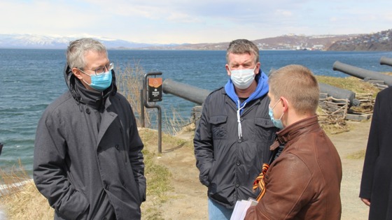 Солодов пригласил мэра краевого центра Константина Брызгина и врио зампредседателя правительства региона Дмитрия Коростелева оценить проект полной исторической реконструкции площадки перед батареей Максутова. Как рассказал представитель инициативной группы Андрей Сюсюкайлов, на сопке ежегодно на день рождения города устраивают реконструкцию событий 1854 года. Однако для привлечения туристов здесь нет объектов. По проекту предусмотрена казарма, с воссозданными деталями солдатского быта, и актеры в соответствующей форме. Они будут разыгрывать мини-спектакли в определенное время. Солодов отметил, что благоустройство Никольской сопки сложно считать законченным, площадка перед лестницей совершенно пустая. Можно создать музей под открытым небом. Такие инициативы поддерживаются на государственном уровне. Фото: kamgov