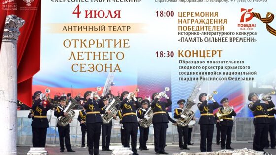 Напоминаем, территория музея открыта для посещения с 18 июня. Мы очень рады, что можем снова принимать гостей! Приглашаем всех на официальное открытие летнего сезона, которое состоится в Античном театре завтра вечером, в 18:00. Мероприятие начнется с торжественного награждения призеров конкурса «Память сильнее времени». Это детское историко-литературное творческое состязание проходило с 10 марта по 30 мая. Его основной темой стали подвиги советских солдат в Великой Отечественной войне. В этом году конкурс прошел в онлайн режиме, что обусловлено распространением коронавирусной инфекции. По завершении вручения наград победителям творческого состязания там же – в Античном театре – состоится концерт классической музыки в исполнении образцово-показательного сводного оркестра крымского соединения войск национальной гвардии Российской Федерации. Напоминаем о необходимости соблюдения мер предосторожности, а именно об использование средств индивидуальной защиты и дезинфекции рук. Вход на культурно-массовые мероприятия бесплатный. Ждем вас на официальном открытии летнего сезона в Херсонесе Таврическом! Справочная информация по телефону: +7 (918) 071-90-90 Об этом сообщают в отделе развития Государственного музея-заповедника “Херсонес Таврический”.