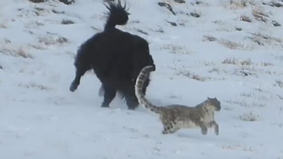 Индийский любитель дикой природы, путешествующий в ноябре прошлого года по заснеженным склонам Тибетского нагорья, стал свидетелем погони парнокопытного местного обитателя за хищницей, гуляющей с тремя детёнышами. Турист запечатлел, как дикая кошка не стала вступать в конфронтацию с превосходящим её в комплекции копытным зверем и с лёгкостью убежала от него. Затем хищница воссоединилась со своими детёнышами и кошачье семейство в поисках добычи, продолжило путешествие по заснеженной местности.