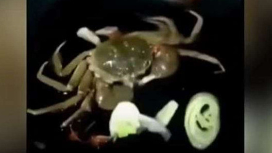Краб покурил сигарету и попал на видео