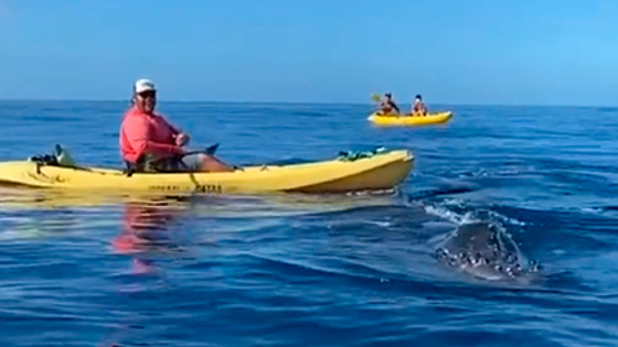Каякеры столкнулись в море с огромным китом вблизи американского острова Мауи, штат Гавайи. На запись с морским млекопитающим обратил внимание портал Yahoo Sports. Пользовательница Instagram по имени Кайла (Cayla) опубликовала в своем аккаунте @ladynthedogs видеозапись с китом, подплывшим к группе каякеров. На записи видно, как несколько желтых каяков плавают на поверхности океана. Горбатый кит подплывает к одной из лодок и мягко ударяет по ее передней части. «Джонни, он ударил твой каяк», — кричит запаниковавший турист. Однако Джонни сохранил невозмутимый вид. Затем кит направился к каяку, в котором сидела оператор. «О боже. О боже. Чувак, чувак, чувак!» — закричала от страха женщина. Кит подплыл к лодке, нырнул и проплыл под ней. После этого животное появилось с другой стороны, высунуло голову и издало грозный звук. На этом моменте видео оборвалось. «В честь сезона китов и этого видео… Поднимите руку, если готовы к более эпичным встречам в этом году», — говорится в подписи к записи. Официально сезон китов на Гавайях длится с декабря по март, но часто этих животных замечают уже в сентябре. Клип собрал более 6,7 тысячи просмотров в Instagram. «Звуковой эффект поразителен», — отметил один из пользователей. «Джонни меня поражает. Как вообще ему удалось остаться таким спокойным?» — удивился другой. «Какая невероятная встреча», — подчеркнул третий.