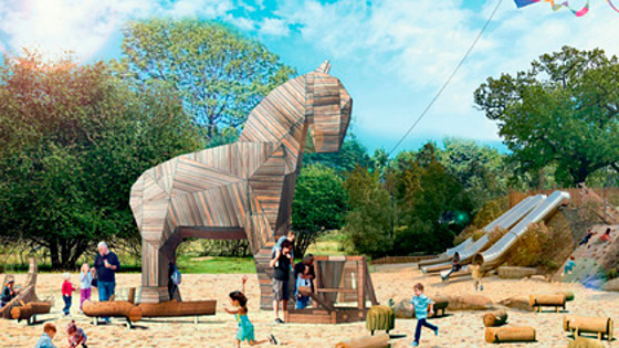Власти Владивостока решили обустроить бухту Аякс на острове Русский. На пляже в этом районе появится игровая территория, которая будет называться «Троянский конь». О проекте благоустройства рассказал российский портал «Восток-Медиа». Скульптуру коня поставят в центре детской тематической площадки рядом с пляжем. Саму площадку оборудуют качелями, горками, скамейками и небольшой стеной для скалолазания. По задумке авторов, в этом месте можно будет не только развлечься, но и узнать о мифах Древней Греции, в частности, о легенде про город-крепость Трою и Троянской войне. Реконструкция пройдет в рамках развития территории острова. Чиновники хотят оборудовать в бухте спортивную площадку и зону для кемпинга — там построят небольшие дома, которые можно будет брать в аренду, и разрешат ставить палатки. Также на пляже появятся велодорожка и мощеная деревом прогулочная зона с современными арт-объектами. Ранее в октябре скульптура лошади появилась в Кургане (Уральский федеральный округ). Ее сделали в виде огромного скачущего коня черного цвета с развевающейся гривой. Однако фигура животного испугала проезжающих мимо автомобилистов. Местные жители раскритиковали местоположение памятника у моста, назвали его жутким и сравнили с всадником апокалипсиса.