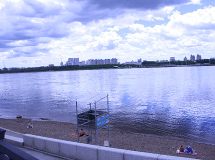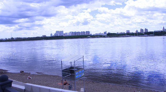 В Благовещенске на Амуре поднимается вода, но дети и взрослые продолжают отдыхать на пляже