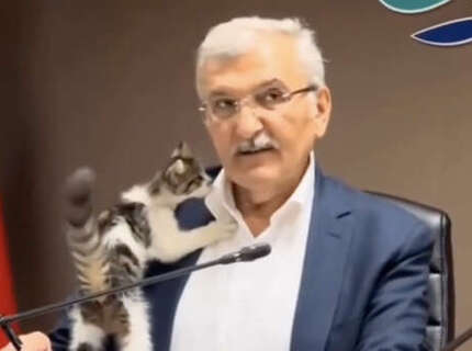 В Турции мэр города опубликовал видео с совещания, которое посетил кот