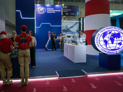 Гости форума «АРМИЯ-2023» имеют возможность посетить выставочный стенд Русского географического общества