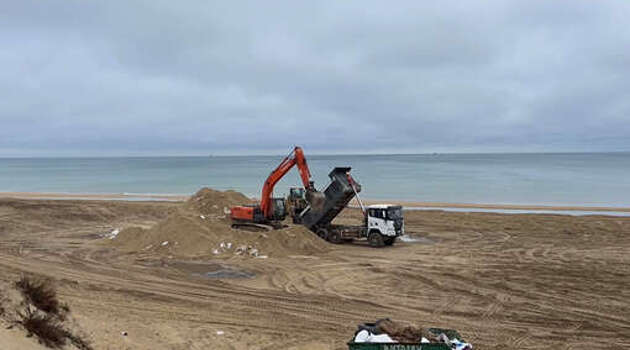 В Анапе перед летним сезоном начали убирать защитный вал от мазута