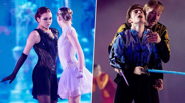 Трусова играла Чёрного лебедя, Кондратюк сражался с Плющенко. Фото с шоу «Лебединое озеро»