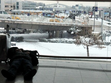 Сон на багажной ленте и игры стенка на стенку: как гости и жители Стамбула пережили снегопад