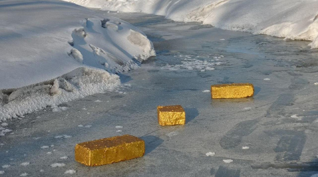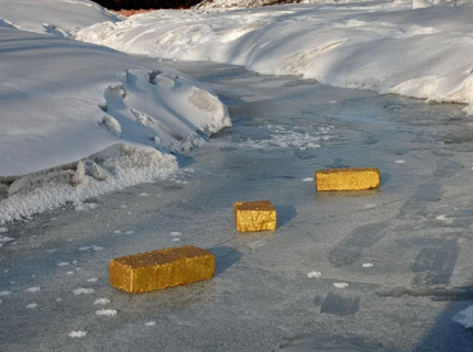 В Благовещенске на Бурхановке появилась инсталляция с тремя золотыми слитками