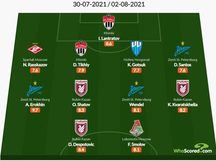 Ерохин лучший во втором туре. Символическая сборная по версии WhoScored