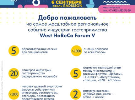 5 образовательных сессий, 20 спикеров, более 1000 онлайн-зрителей: Как пройдёт юбилейный West HoReCa Forum в Калининграде
